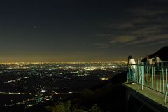 筑波山は男体山と女体山に分かれ、標高877mの女体山には、ロープウエイが通じています。 期間限定(2008年は10月から翌1月の土日祝)されていますが、夜間ロープウエイが運転していて、気軽に夜景を見ることができます。 あいにく私の取材したときには、天候不順でしたが、視界が良い日には、150km離れた富士山のシルエットまで望むことができるようです。 標高877mといえば、日本でも有数の標高の高い夜景スポットであり、周辺に視界を遮る山が全くないために、とてもスケールの大きい夜景を見下ろせます。 営業時間は不定期ですので、詳しくは筑波観光鉄道にお問い合わせ下さい。 公式サイトは登録されていません。 |