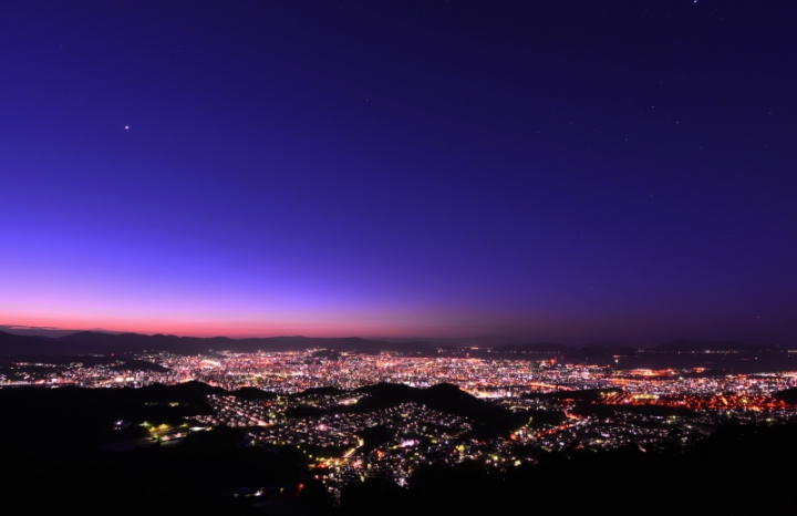 広島市全域を遮る物なく臨む事ができるスポットです。 山頂まで続く道路が繋がっているのですがNTT所有の道路の為ここから進入することはできません。 山頂へは100mほど手前の登山道から目指します。 途中でNTTの道路に出ますがガードレール越えの看板に従い再び山道を進みます。 登山道は暗闇が続きますが、山頂からは広島市の光の絨毯が広がります。 展望ポイントが複数ありわかりずらい上、登山道入り口から山頂までは20分ほど掛かるので明るいうちからの登山をお勧めします。 公式サイトは登録されていません。 |