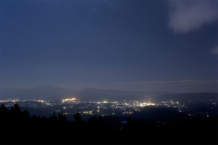 標高1128mの笠置山中腹に、一望千金展望台と名付けられた展望台があります。カーブの内側に展望台があり、駐車場はないため、夜間は気づきにくい場所です。 カーブの外側に車を停めて、道沿いに山側に10秒ほど歩くと、左手に展望台の看板と、登り口が見つかります。ここから20秒ほどで展望台に到着します。 展望台は木製で、視界は広く、恵那峡ワンダーランド方面の夜景を望めます。光量は高さの割には控えめですが、それでも満足できる夜景と言えるでしょう。 アクセスする道路は複数ありますが、蛭川中学校からの登り口からアクセスすると完全舗装された道路で到着できます。 公式サイトは登録されていません。 |