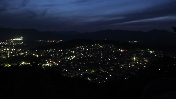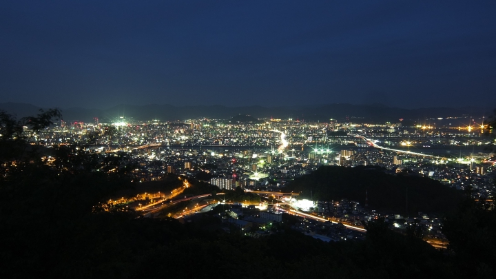 鈴ヶ峰の北東側の隣の山、鬼ヶ城山の八畳岩の上からは、広島の街を一望できるほかに、美鈴ヶ丘の住宅夜景まで見渡せます。 広島市中心部側は、木が邪魔して視界が狭いことが残念です。 公式サイトは登録されていません。 |