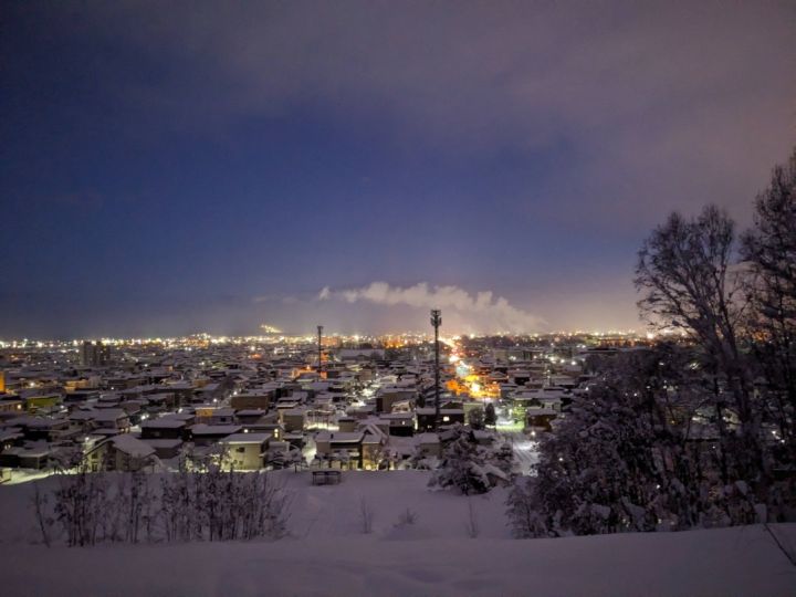 環境学習広場の駐車場から遊歩道を進むと6分ほどで眺望が開けた場所に出て、展望台となっています。真下に春光の住宅地が広がっており、旭川市中心部を望む夜景となっています。高さはないため小規模な夜景となっていますが右奥には旭川駅方面も見えます。懐中電灯が必要です。雪景色の夜景は何とも趣きがあって良いものですね。 公式サイトは登録されていません。 |