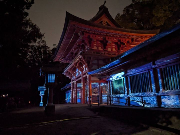 2025年11月8日〜24日まで「時結びの杜」と題して楼門のプロジェクションマッピングが行われていました。伝統的建築物と光のコラボは何とも美しいですね。 公式サイトは登録されていません。 |