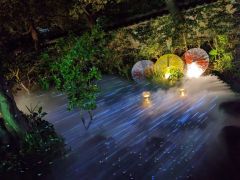 2025年10月11日・11月1日・12月6日(いずれも土曜日)に「行田花手水タウン」というライトアップイベントが開催され、忍城の御三階櫓のプロジェクションマッピングが行われました。2026年にも開催予定があるようです。市街地の商店や民家の軒先に飾られた花手水のライトアップも行われていました。 公式サイトは登録されていません。 |