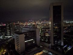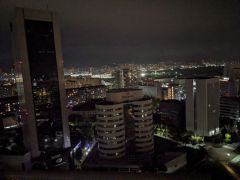 ポートアイランドのランドマーク神戸ポートピアホテル客室からの夜景です。神戸市街地側22F本館ミッドセンチュリーシングルからの夜景になります。色んな意味で目の前のワールド本社ビルの存在感がすごいですが、ポートアイランド中心部から神戸市街地に向けての夜景を楽しむことができます。アクセスはポートライナー「市民広場駅」からすぐです。 公式サイトは登録されていません。 |
