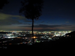 1995年頃までは、ほとんど訪れるひとがいない穴場夜景スポットですが、きちんと公園が整備されて行くうちに、有名になってきました。 標高夜景300mからの夜景は、京都市内や奈良方面までも望むことができます。また芝生に座ったまま夜景がみれるというのが、他の夜景スポットにはなかなかない素晴らしい特徴です。 夜景愛好家 縄手が自信を持ってお薦めできる夜景スポットですが、アクセスが複雑で、道は舗装はされているものの狭いのが難点です。 しかし、そこまでして行く価値が十分ある「万灯呂山展望台」。是非ともここで夜景のすばらしさを味わってください。 ちなみに「万灯呂」の名は、雨乞神事の祭にたいまつ行列が行われたことに由来しているようです。 ■通行情報 7/20~8/31 土~日 22:00迄/月~金 17:00迄 9/1~7/19 常時通行可能 公式サイトは登録されていません。 |