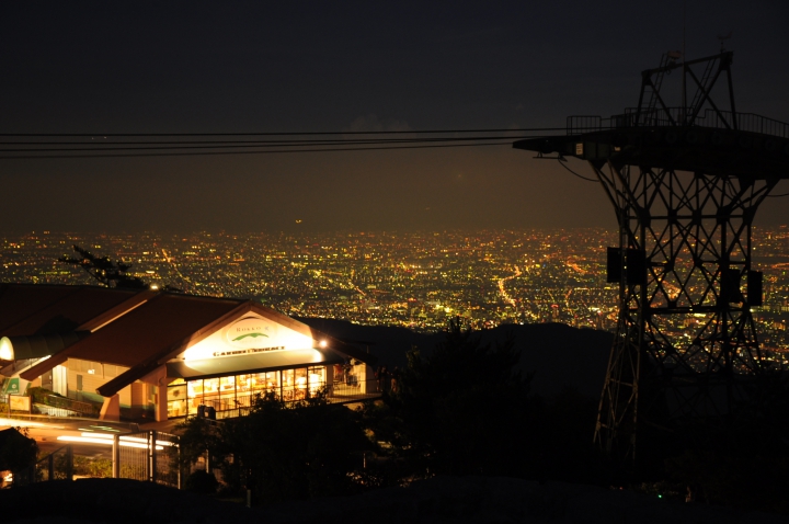 「回る十国展望台」と親しまれてきた神戸を代表する夜景スポットが、「六甲ガーデンテラス」として2003年4月にリニューアルされました。 英国調のこぢんまりとしたガーデンに、輸入雑貨ショップや、カフェ、ビードロショップ、コンビニなどあり、展望施設としては、とても充実しています。 園内の至ることろから夜景を見渡すことができ、見晴らし広場からは、階段に座ったまま、夜景を楽しめます。さらにバリアフリーなので、車椅子に座ったままでも景色が眺められるのも大きな特徴でしょう。 また展望塔からは、いっそう視界が広がり、明石大橋のライトアップ、関空、そして眼下にガーデンテラスのライトアップが視界に入り、その様子は芸術そのもです。 このような国内最大級の夜景スポットであろう「六甲ガーデンテラス」は、カップルからファミリー、シルバー世代まであらゆる層にお奨めできるスポットです。 ■施設情報 ・営業時間 平日21時まで/土日祝22時まで ・入園無料 ・駐車場 500円/日 ・休館日 なし 公式サイトは登録されていません。 |