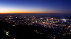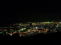 新日本三大夜景のひとつである皿倉山は、標高622mで「100億ドルの夜景」とも呼ばれ、北九州市のシンボル的存在でもあります。 展望広場は広大であり、展望台からはもちろん、芝生に座り込んだままの姿勢で、北九州市の夜景を一望できます、 そのスケール感は圧倒されるものがあり、新日本三大夜景のなかでトップです。 なお、車で山頂へ行くことができますが、駐車場スペースが狭く、山道の長いので、ケーブルを利用することをお薦めします。 ※金土日の18時以降は翌朝10時まで、帆柱ケーブル山麓駅から山頂までの皿倉山道路は通行禁止となります。(八幡東警察署電話確認済み 2013年8月) ■帆柱ケーブル/帆柱スロープカー 詳細は公式サイトにてご確認ください。 http://www.hobashira-cable.co.jp/ <新日本三大夜景> ・皿倉山(福岡県北九州市) ・若草山(奈良県奈良市) ・笛吹川フルーツ公園(山梨県山梨市) 公式サイト |