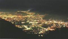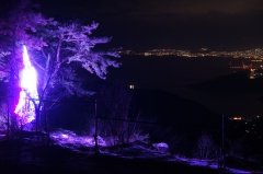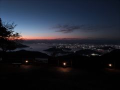 広島市を一望できる場所として、地元では知られている絵下山は、週末には数台の車が訪れています。 暗い山道を15分ほど走り、途中からは一切夜景をみることができません。はじめてくる訪れる方は不安になりますが、その分夜景が見えたときの感動はひとしおです。 広島市は山と港に囲まれた都市であることが、よく分かります。ここは車に乗ったまま夜景を望むこともできますが、駐車場の奥の小道を、夜景が見える方向にすこし歩いていくと、なお一層視界が広がります。 ここまできたのならば、ぜひここから雄大な夜景を味わってみましょう。 【2012年4月追加情報】 駐車場から1分ほど歩いたところ岩場から夜景を眺めるのですが、木々の生長により夜景が二方向に分かれていました。また岩場の先が断崖絶壁で足下を十分注意しないといけません。 しかし、広い駐車場に隣接した芝生の広場の新たな眺望ポイントが生まれました。こちらは安全であり、広場にある小さな岩に登るとパノラマの夜景が拡がります。 公式サイトは登録されていません。 |