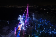 筑波山は男体山と女体山に分かれ、標高877mの女体山には、ロープウエイが通じています。 期間限定(2008年は10月から翌1月の土日祝)されていますが、夜間ロープウエイが運転していて、気軽に夜景を見ることができます。 あいにく私の取材したときには、天候不順でしたが、視界が良い日には、150km離れた富士山のシルエットまで望むことができるようです。 標高877mといえば、日本でも有数の標高の高い夜景スポットであり、周辺に視界を遮る山が全くないために、とてもスケールの大きい夜景を見下ろせます。 営業時間は不定期ですので、詳しくは筑波観光鉄道にお問い合わせ下さい。 公式サイトは登録されていません。 |