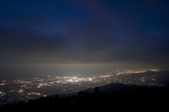 登山愛好家には絶景の山として有名な陣馬形山。標高は1445mで標高差は約800mと十分な高度があり、視界も180度ほどあるため、スケール感溢れる夜景を楽しめます。 駐車場は2ヶ所あり、1ヶ所の方は、フロントガラス越しに夜景を楽しめます。もう1ヶ所の駐車場から200mほど芝生を歩いていくと、展望広場に到着します。 なお、陣馬形山へのルートは注意が必要です。なぜならば、カーナビやネット地図では、県道210号線の折草峠から登るように思いますが、未舗装道路でお薦めできません。(もしくは通行できません) 正しいルートは、中川村美術館方面から登るルートですが、山頂に繋がる最後の数kmは地図に載っていません。(googleマップの航空写真で確認すると道が判明します。) そのような分かりにくいコースであるためか、県道16号線と県道217号線がT字で合流する付近の県道16号線に、「陣馬形山」への看板がでてきます。これに従って、進んでいくと、完全舗装道路で山頂までたどり着きます。 大まかのポイントをピックアップすると、中川村美術館近く→JA(小さな脇道に入る感じです。「陣馬形山(車・バイク)8km」という小さな看板もあります)→風三郎神社 です。 --静岡夜景 NIGHT WALKさんの記事 南信州最大の夜景スポットです。 標高1445Mと高く、下界と標高差がありますので行かれる方は防寒対策はしっかりしましょう。山梨県でいえば甘利山、長野県でいえば陣馬形山というほどの極上夜景です! 人口数的には大都市と比べ劣りますが、飯田、駒ヶ根、伊那までとパノラマワイドに見える夜景には誰もが感動するでしょう! 取材時、霧が出てきてしまいましたが、秋や冬なら夕日に沈む中央アルプスとトワイライトを狙えばすごい夜景が楽しめると思います。 またアクセスする林道がいくつかあります、迷いやすいので事前に地図で調べていく事をおすすめします。駐車場からも夜景が楽しむことができますが、2分ほど歩いたキャンプ場の奥の芝生のベンチから見ることをおすすめします。トイレはありますが自動販売機などはありませんので気をつけてください。 公式サイトは登録されていません。 |