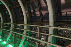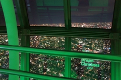 なお、夜景撮影はチューブを登り切った右手、および下りエレベータ付近からであれば、三脚なしで撮影可能です。なお、三脚の利用について、インフォメーションに問い合わせたところ、「禁止はしていませんが、警備員に止められたら利用を控えて下さい」と言われました。私は比較的大型三脚を持ち込みましたが、利用は最小限にするなどして、注意されずに夜景撮影を行えました。