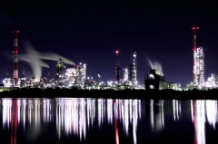 またこのスポットは、鈴鹿川を挟んで観賞するポイントとなっているため、強い光を放つ工場の明かりが川の水面に反射し、横の視野だけでなく縦の視野でも広く見れるのが特徴です。