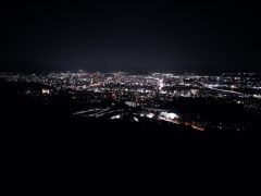 鈴ヶ峰の北東側の隣の山、鬼ヶ城山の八畳岩の上からは、広島の街を一望できるほかに、美鈴ヶ丘の住宅夜景まで見渡せます。 広島市中心部側は、木が邪魔して視界が狭いことが残念です。 公式サイトは登録されていません。 |