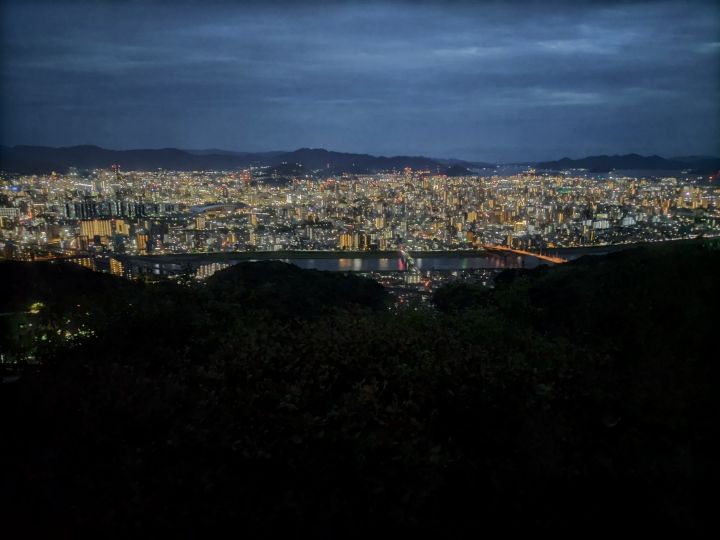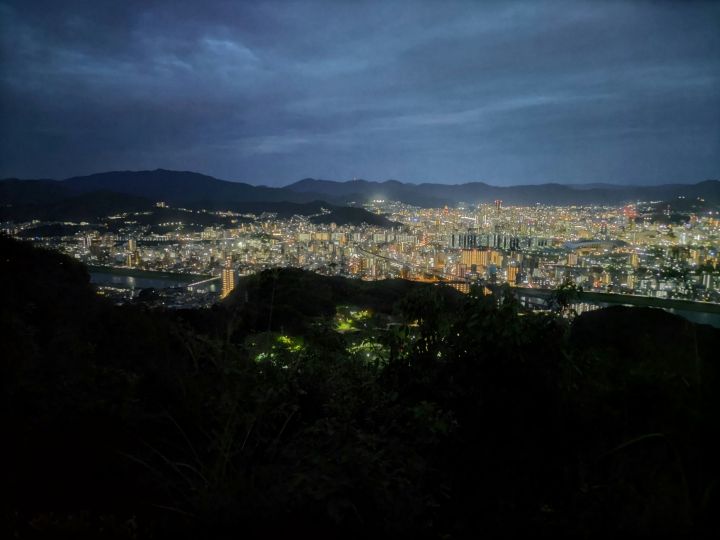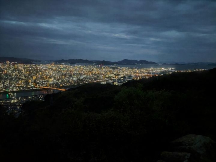 竜王公園の背後にある標高230mほどの高峠山には展望岩かあり、そこが眺望地となっています。 高度はさほどないにせよ、広島の街をほぼ足元から見られるかのような迫力のある夜景を見ることができます。 登山口は竜王公園近くの三滝少年の家の横か己斐大迫3丁目の幹線道路沿いにあります。 いずれの場所から展望地までは徒歩15〜25分程度です。 懐中電灯は必須です。 公式サイトは登録されていません。 |