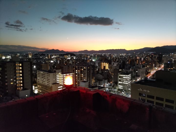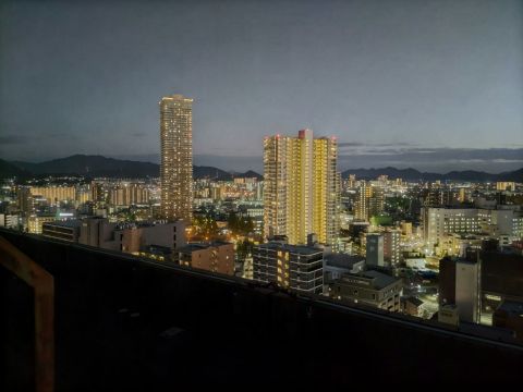 広島市役所の屋上には北側屋上と南側屋上と分かれています。 一般にも開放しています。 北側屋上の開放時間は下記のとおりで、夜景を見られる時期が限られます。 ・平日7:30〜17:15のみ 南側屋上の開放時間は下記のとおりで、平日はゆっくり夜景を見られます。 休日に夜景見られる時期は限られます。。 ・平日7:30〜21:00 ・休日7:30〜18:00 今回は南側屋上を紹介します。 眺められる範囲は広島市役所より南側と東西方向です。 この場所には喫煙スペースもあるため、タバコが気になる方にはお勧めしにくいですが、夜景スポットとしては穴場かと思います。 公式サイトは登録されていません。 |