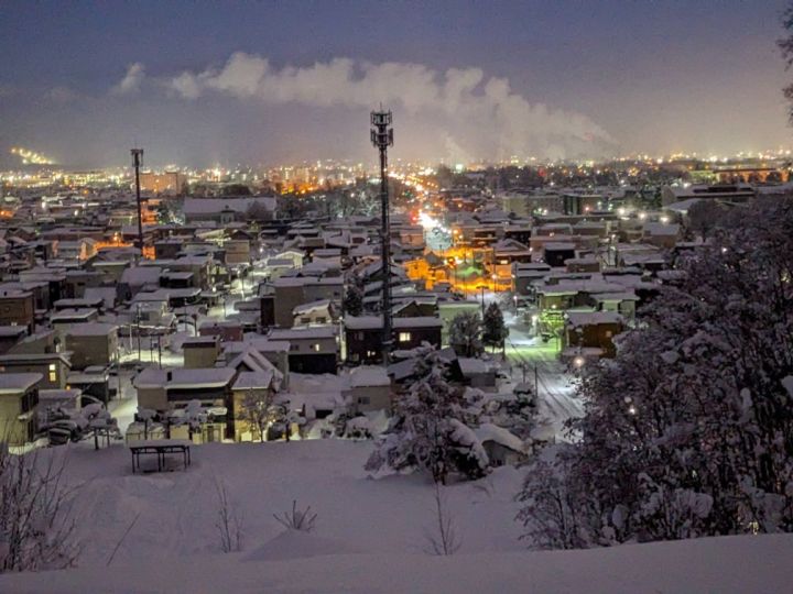 環境学習広場の駐車場から遊歩道を進むと6分ほどで眺望が開けた場所に出て、展望台となっています。真下に春光の住宅地が広がっており、旭川市中心部を望む夜景となっています。高さはないため小規模な夜景となっていますが右奥には旭川駅方面も見えます。懐中電灯が必要です。雪景色の夜景は何とも趣きがあって良いものですね。 公式サイトは登録されていません。 |