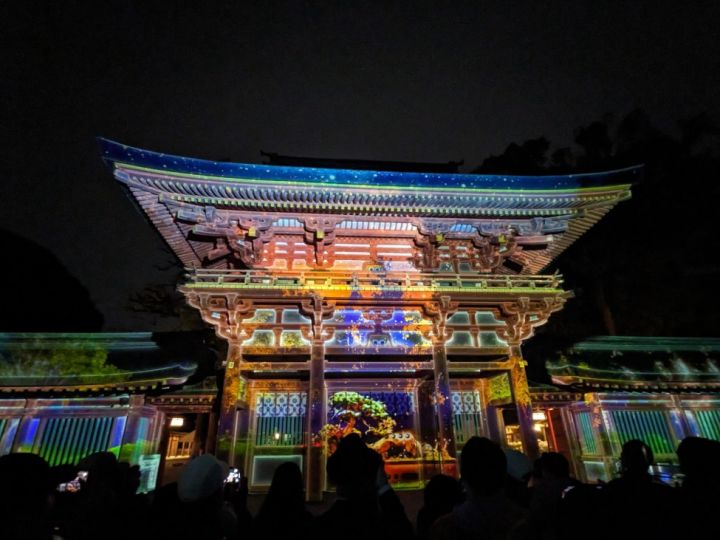 2025年11月8日〜24日まで「時結びの杜」と題して楼門のプロジェクションマッピングが行われていました。伝統的建築物と光のコラボは何とも美しいですね。 公式サイトは登録されていません。 |