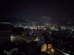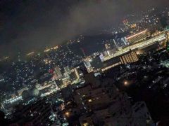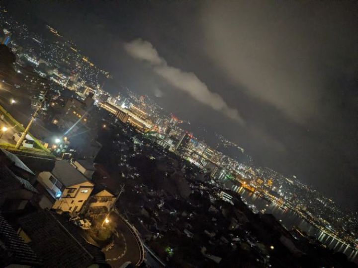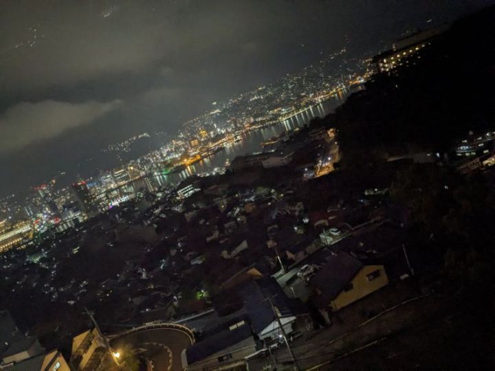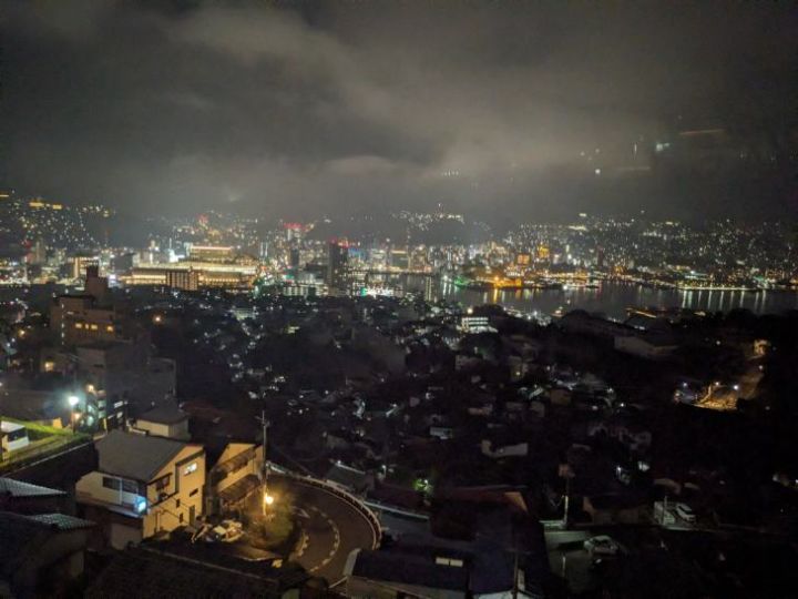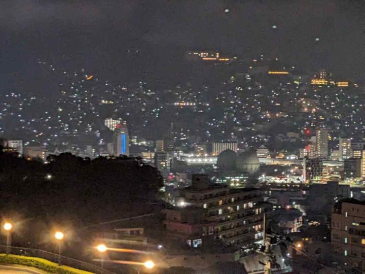 ホテル6Fプレミアムツインハーバービューからの夜景です。稲佐山の中腹にあり、高度もあるため長崎港方面が良く見渡せる非常に素晴らしい夜景となっています。山の斜面に住宅が建て込む長崎市の地形の特徴が非常に良く分かります。斜面のハートのイルミネーションも素敵ですね。さすが夜景都市長崎です。 公式サイトは登録されていません。 |