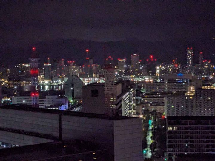 ポートアイランドのランドマーク神戸ポートピアホテル客室からの夜景です。神戸市街地側22F本館ミッドセンチュリーシングルからの夜景になります。色んな意味で目の前のワールド本社ビルの存在感がすごいですが、ポートアイランド中心部から神戸市街地に向けての夜景を楽しむことができます。アクセスはポートライナー「市民広場駅」からすぐです。 公式サイトは登録されていません。 |