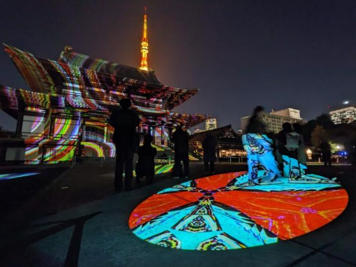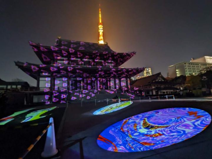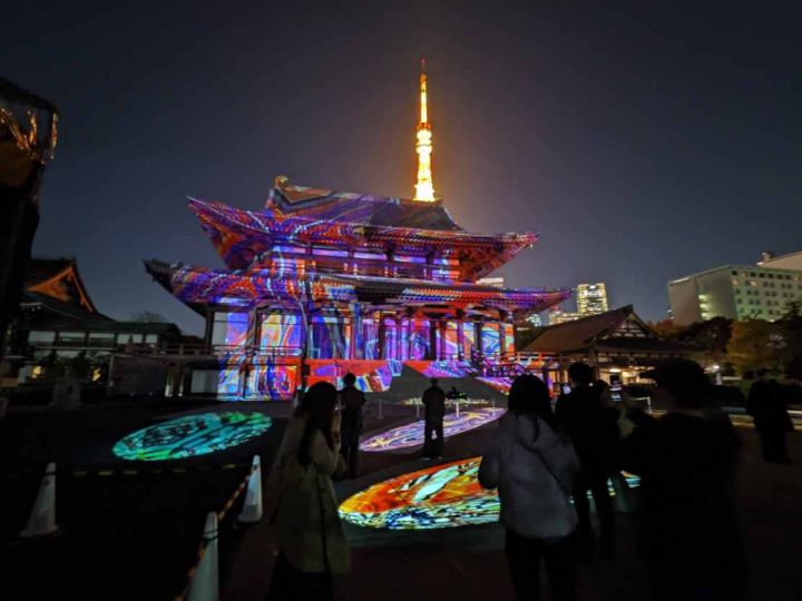 2025年11月19日〜11月22日の17時45分〜21時に「ノスタルジック江戸展〜浮世絵が映す江戸〜in増上寺」というイベントが開催されました。歴史的建造物に浮かぶ「江戸」をコンセプトとしたプロジェクションマッピングで過去から現在へと続く「時間」を表現するというテーマでした。入場料は無料でした。