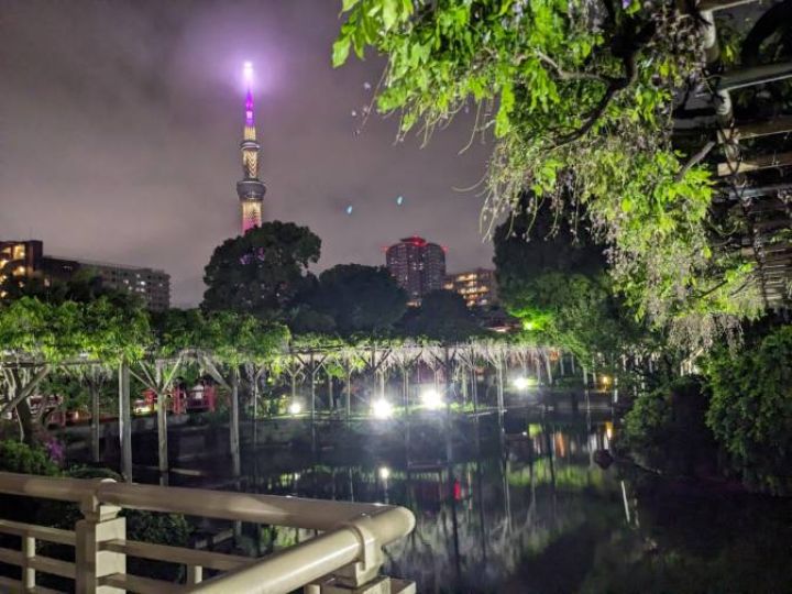 2025年は4月5日〜4月30日に藤まつりが開かれ、夜間のライトアップも行われました。