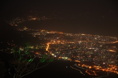 大分県別府市の背後にそびえ立つ阿蘇くじゅう国立公園の一部である鶴見岳より、別府~大分市街を見下ろす事が出来ます。 展望場所は4箇所。 ・ロープウェイ駅屋上 ・駅を出て右奥に行くと展望台(この場所が一番ワイドに見えます) ・山頂を目指す途中にあるレストラン跡のベランダから。 ・山頂 山は歩いて登ることも可能だけど、世界一らしいロープウェイに乗って10分程で山頂手前まで簡単に登ることが出来ます。しかしこのロープウェイ、普段は午後5時が最終便で夜景を鑑賞することは不可能。しかし夏休み期間中には「納涼1000万ドルの夜景観賞」としてナイター営業をやっていて、その期間は最終便は22時となる。そのため、期間限定ではあるが夜景鑑賞が可能。 2010年4月より、週末のナイター営業を開始。詳しいスケジュールは公式サイトのリンクから確認してください。 公式サイト |