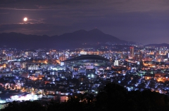 北九州市には多くの夜景スポットが点在していますが、ここ足立公園は市内からも近く、駐車場に車を停めて、フロントガラス越しに夜景鑑賞を楽しめるため、地元では人気あるスポットとなっています。